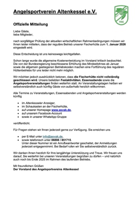 Unsere Fischerhütte hat nur noch zu unseren Veranstaltungen und Fischen geöffnet!