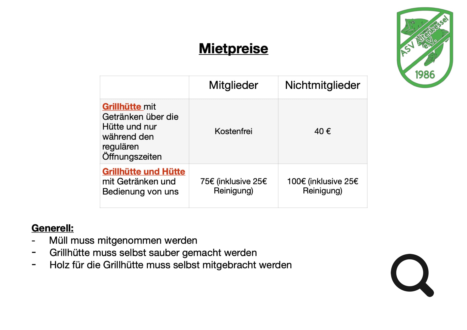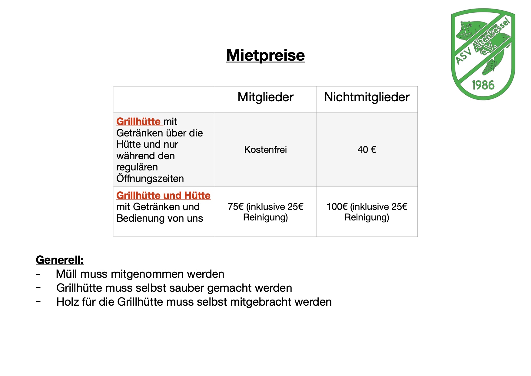 Unsere Fischerhütte und unsere Grillhütte kann man mieten!